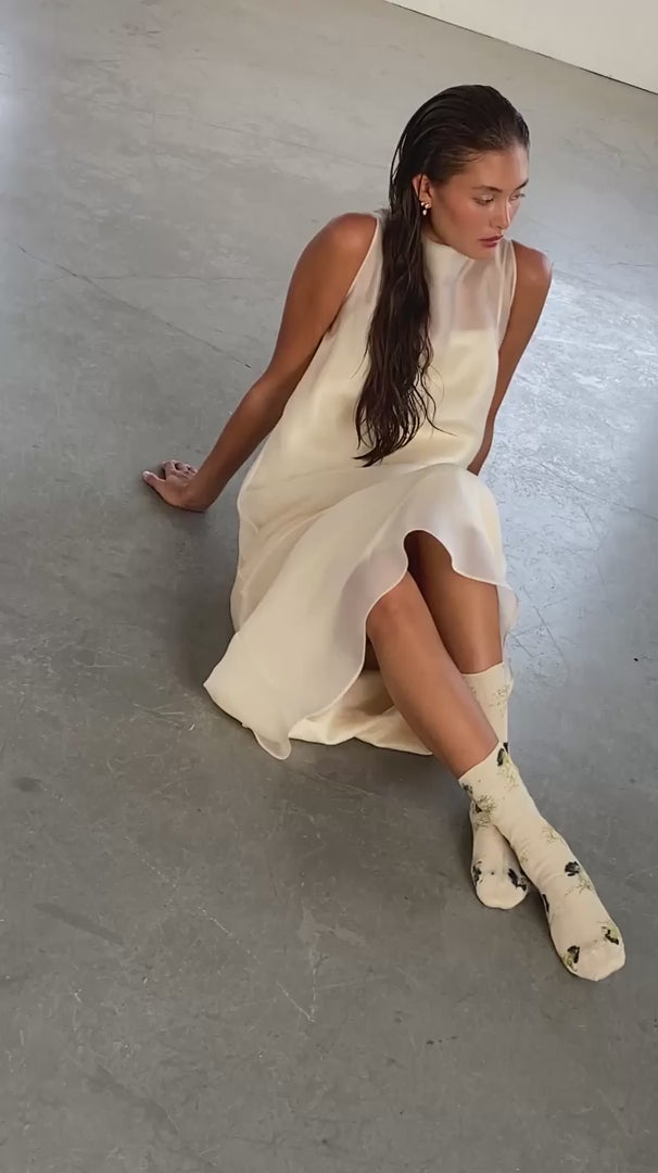 Chaussettes en coton biologique extra doux, cultivé sans pesticides ni engrais synthétiques. Motif exclusif conçu en collaboration avec Marie-les-bains et mettant en vedette des fleurs de Cotinus. Édition limitée.