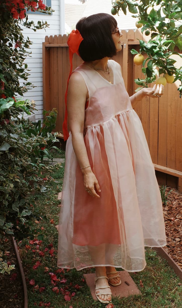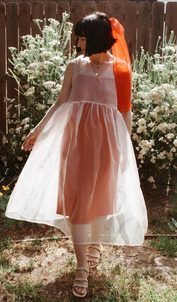La robe Coco est taillée dans un organza de soie ultra-léger et délicat.À porter en superposition avec une de nos robes à bretelles (non incluse) ainsi qu'un chouchou.